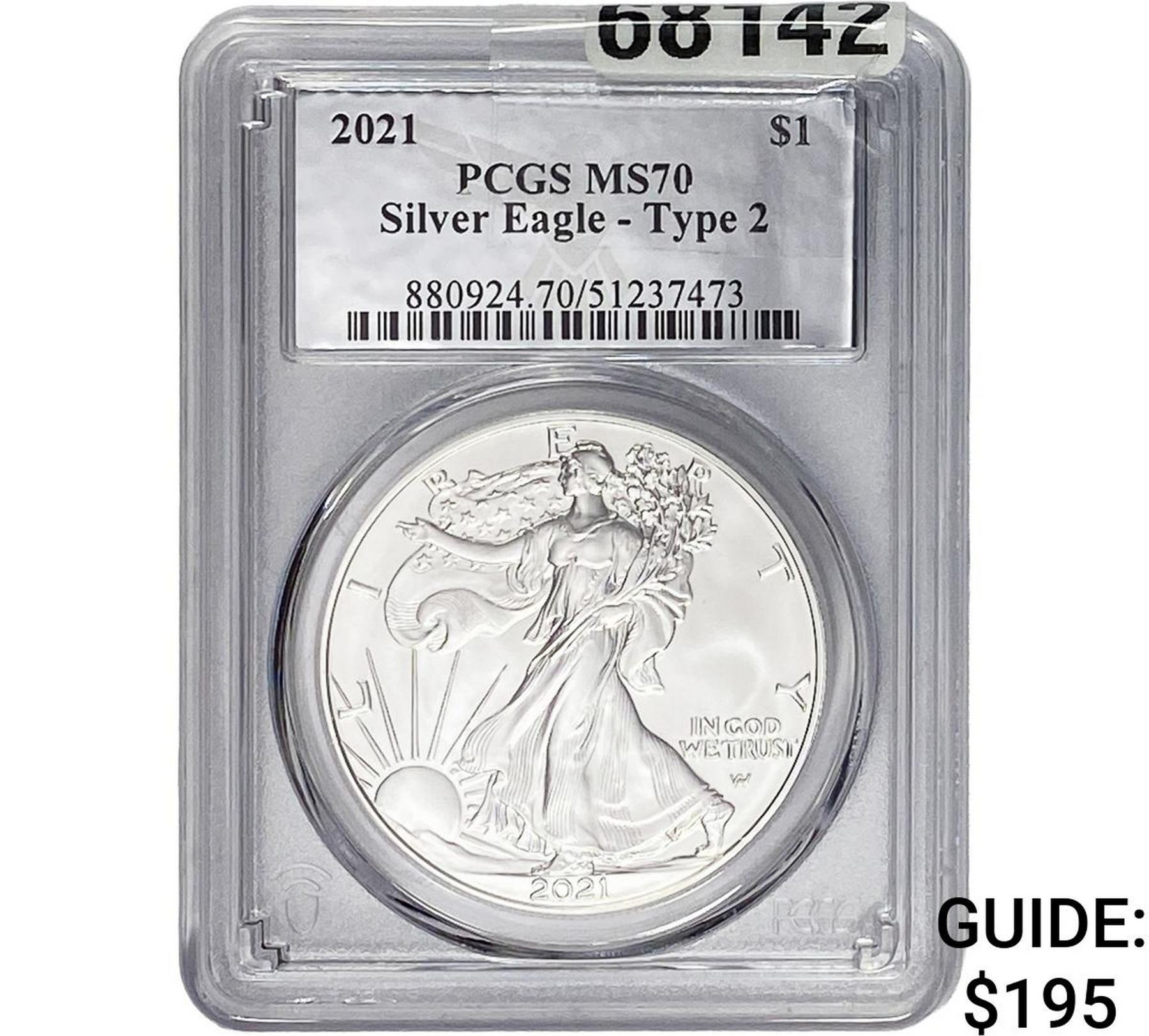 2021 American Silver Eagle 1oz PCGS MS70 Type 2