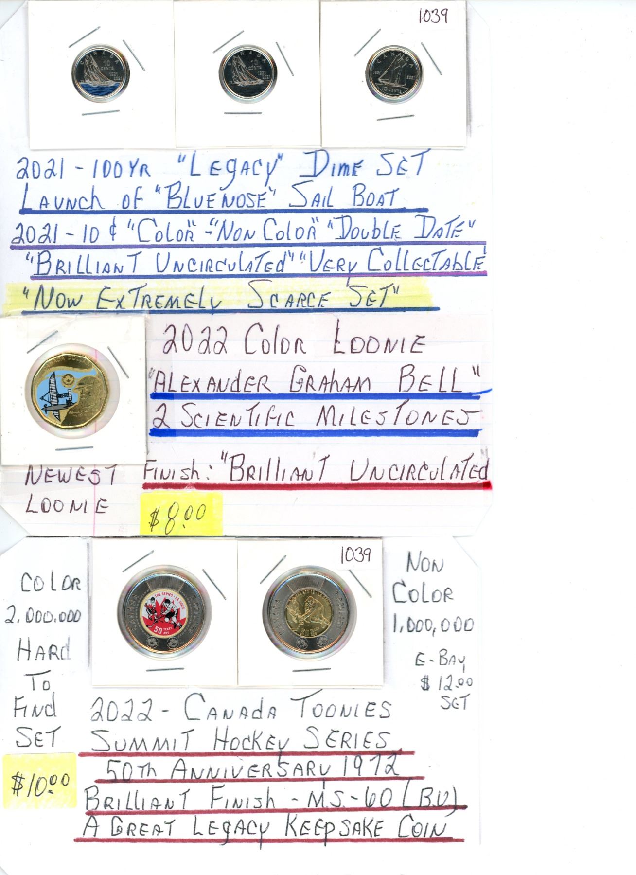 2021 Bluenose Legacy dime set and 2022 "Alexander G. Bell Loonie & 2022 "Summit Hockey series" Toonies