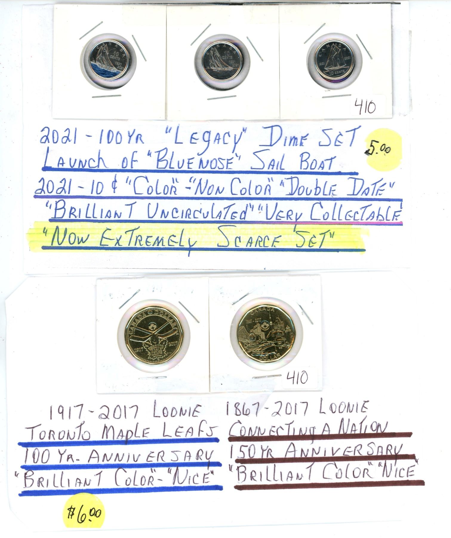 2021 Bluenose sail boat dime set & 2 Loonies - 1917-2017 Maple Leafs & 1867-2017 Connecting a Nation Loonie