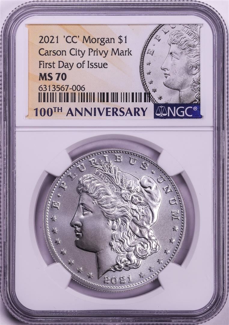 2021-CC $1 Morgan Silver Dollar Coin Privy Mint NGC MS70 First Day of Issue