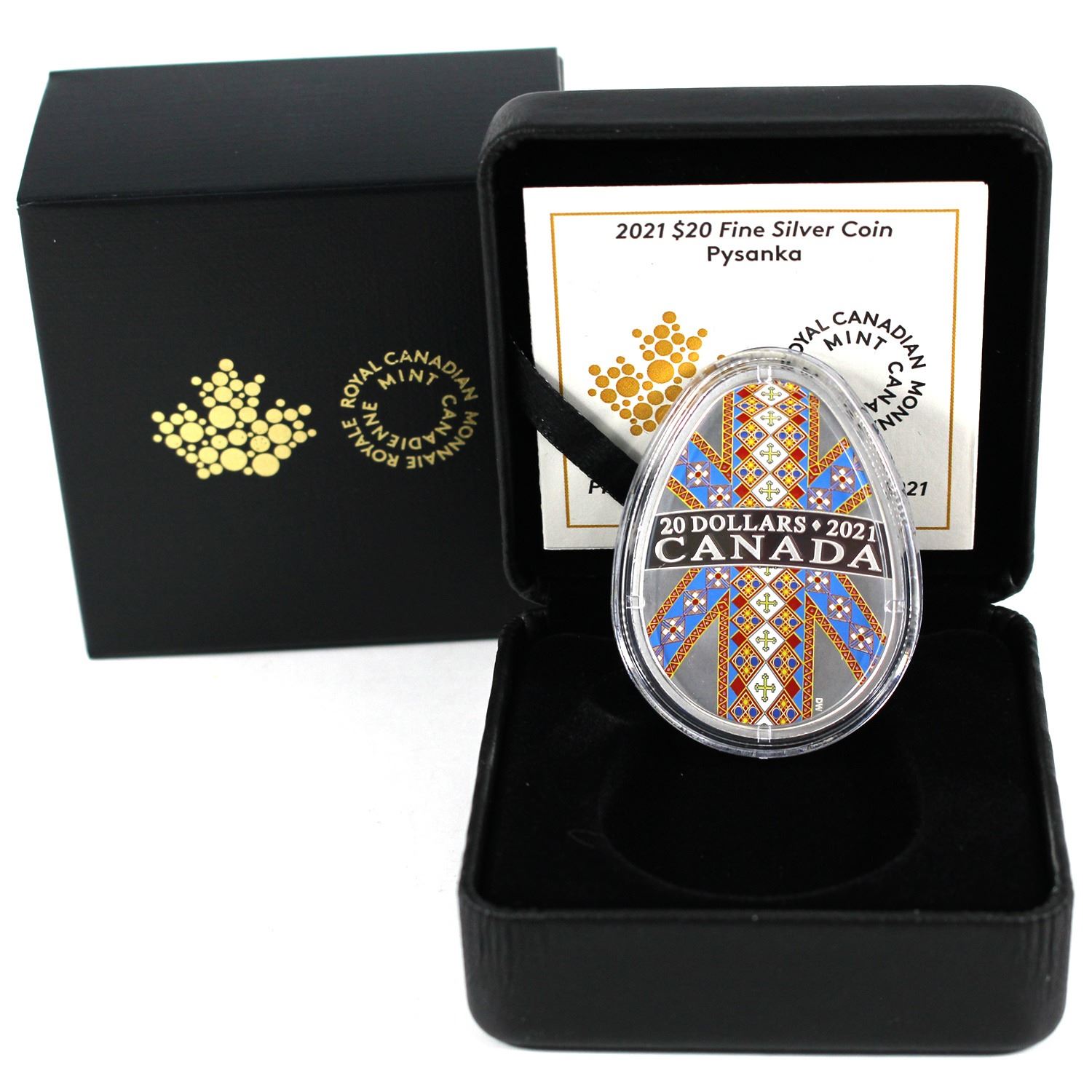 2021 Canada $20 Pysanka Egg Shaped Fine Silver Coin. (TAX Exempt)