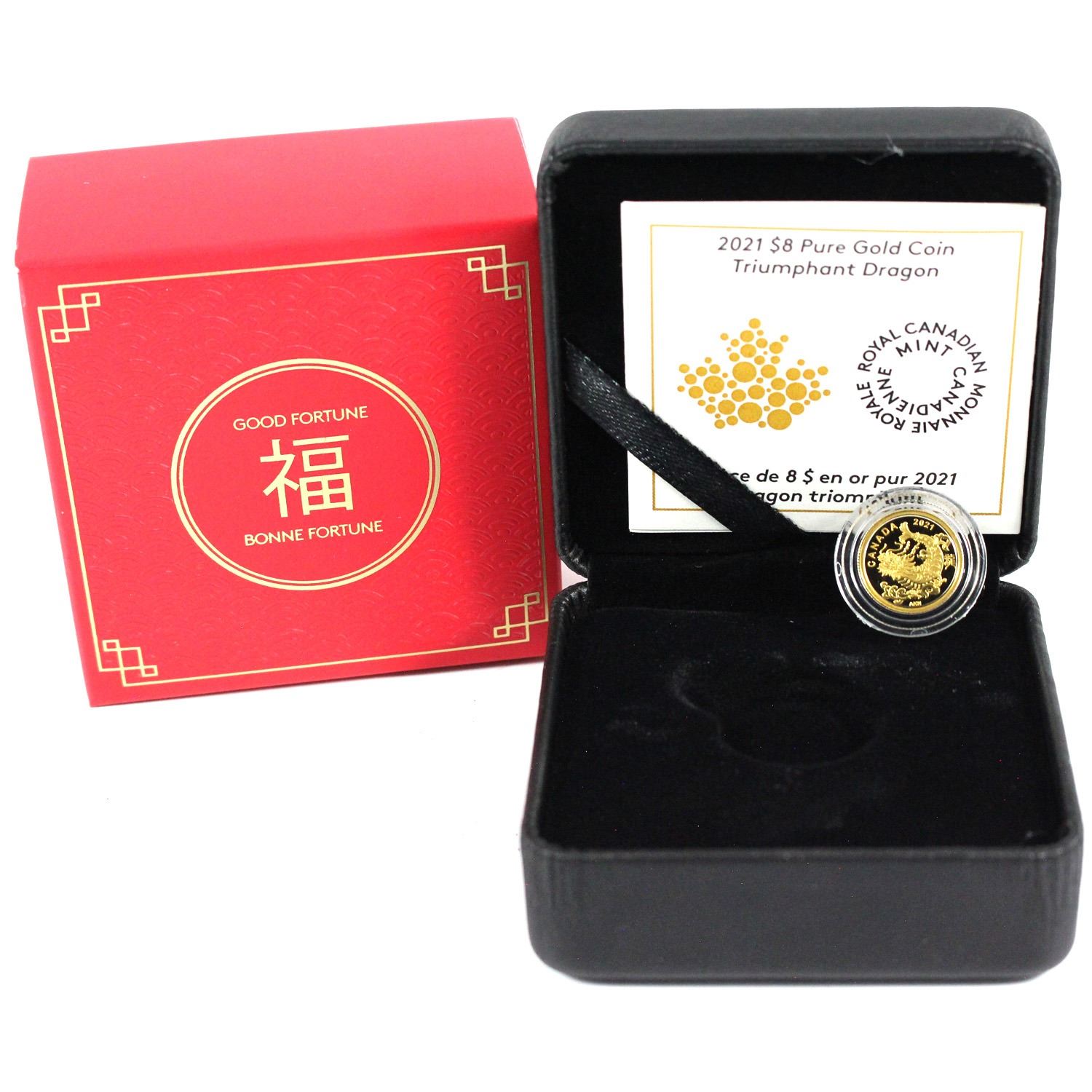 2021 Canada $8 Triumphant Dragon 1/20th oz Fine Gold Coin.Limited Mintage 8,888! (TAX Exempt)