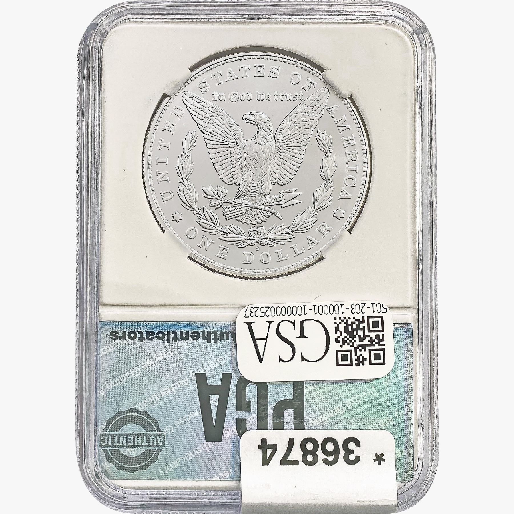COINS AND CURRENCY LISTED IN GSA’S CATALOG AS GRADED AND ENCAPSULATED BY PCGS, NGC, ANACS, ICG, PCGS CURRENCY, PMG, PCGS BANKNOTE GRADING, CMC OR ANY OTHER THIRD-PARTY GRADING SERVICE ARE LIKEWISE SOLD “AS-IS” EXCEPT AS EXPRESSLY SET FORTH HEREIN. ALL THIRD-PARTY GRADING SERVICE GUARANTEES, INCLUDING AUTHENTICITY, ARE THE SOLE RESPONSIBILITY OF THE THIRD-PARTY GRADING SERVICE AND NOT WARRANTIES OR GUARANTEES OF GSA. BIDDERS SHOULD CONTACT THESE THIRD-PARTY GRADING SERVICES DIRECTLY WITH RESPECT TO ANY CLAIMS OR QUESTIONS THEY MAY HAVE CONCERNING THEIR GUARANTEES AND WARRANTIES. BIDDERS ACKNOWLEDGE AND AGREE THAT AUCTIONEER IS NOT BOUND BY OR LIABLE FOR ANY OPINION OR CERTIFICATION BY ANY THIRD-PARTY GRADING SERVICE. REMOVAL OF A PRODUCT FROM ITS PROTECTIVE CASING OR HOLDER OR ALTERATION OF ANY COIN HOLDER WAIVES ALL RIGHTS CONCERNING THE PRODUCT CONTAINED THEREIN.