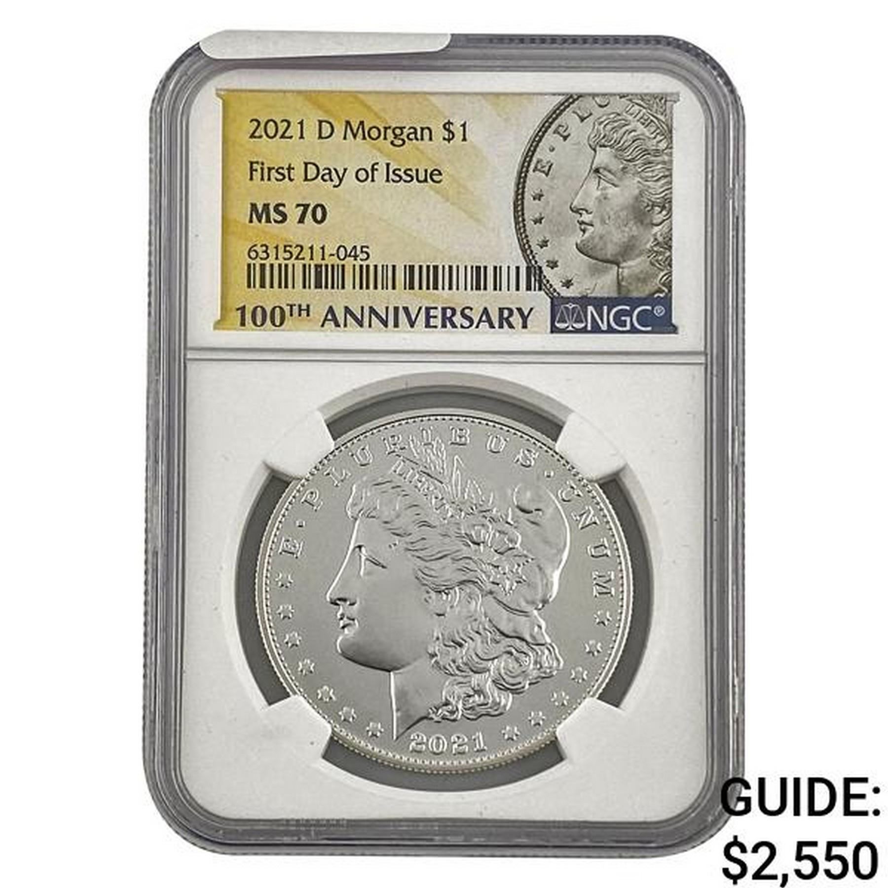 2021-D Morgan Silver Dollar W/Box NGC MS70 1st Day of Issue
