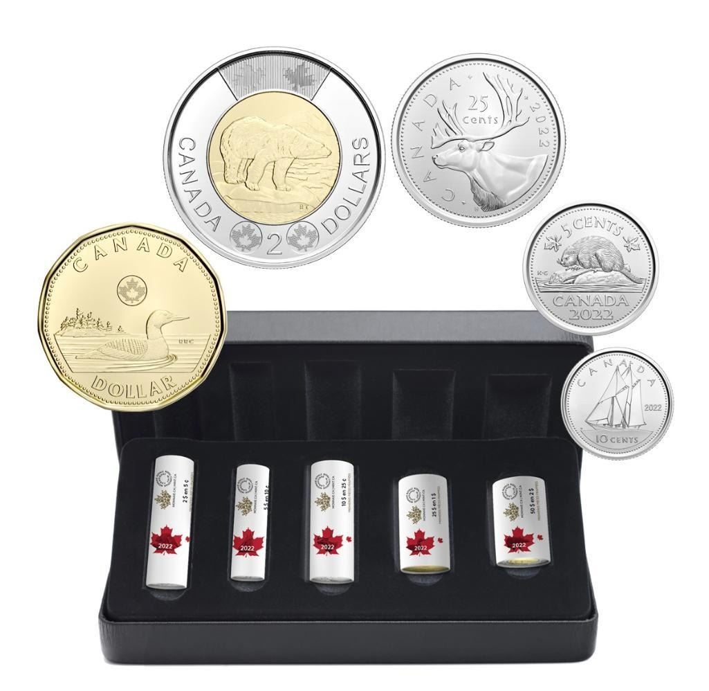 This set locks in your 2021 circulation coins and keeps them under wraps for you to share with future generations. The coins in each set are uncirculated first strikes; they are among Canada’s first 2021-dated circulation coins struck at the RCM's Winnipeg facility. And every circulating denomination (5¢, 10¢, 25¢, $1 and $2) is represented here, all wrapped in premium paper and sealed with a holographic label. These rolls are one of the first 5,000 rolls of 2021-dated coins to be struck in the RCM's Winnipeg presses for 2021. Each coin depicts a defining image of Canada that has been in use since 1937 (1987 and 1996 for the $1 and $2, respectively). These Canadian icons include the: beaver, bluenose, caribou, common loon, and polar bear.