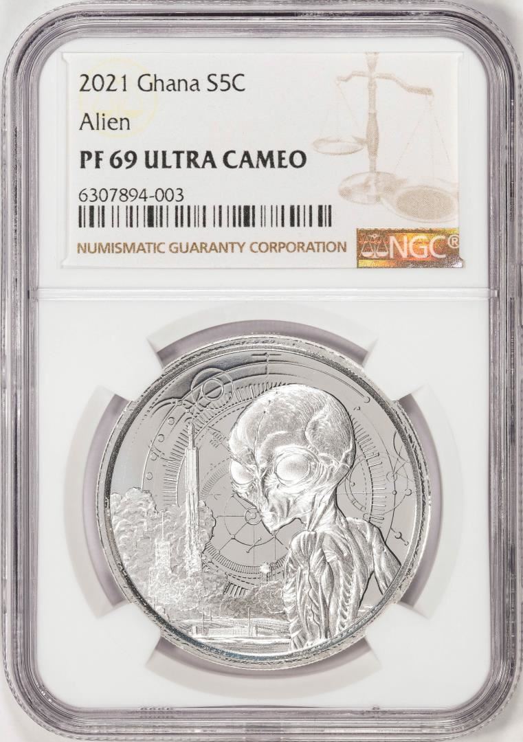 2021 Ghana 5 Cedis Proof Alien 1oz Silver Coin NGC PF69 Ultra Cameo