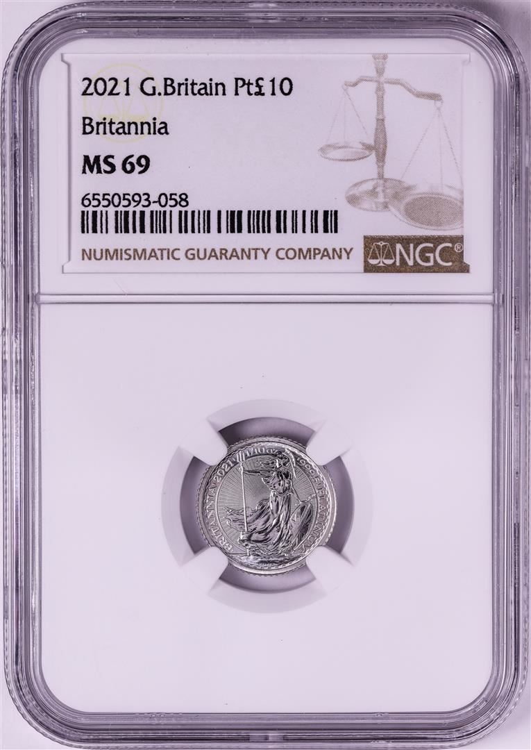 2021 Great Britain 10 Pounds Britannia 1/10oz Platinum Coin NGC MS69