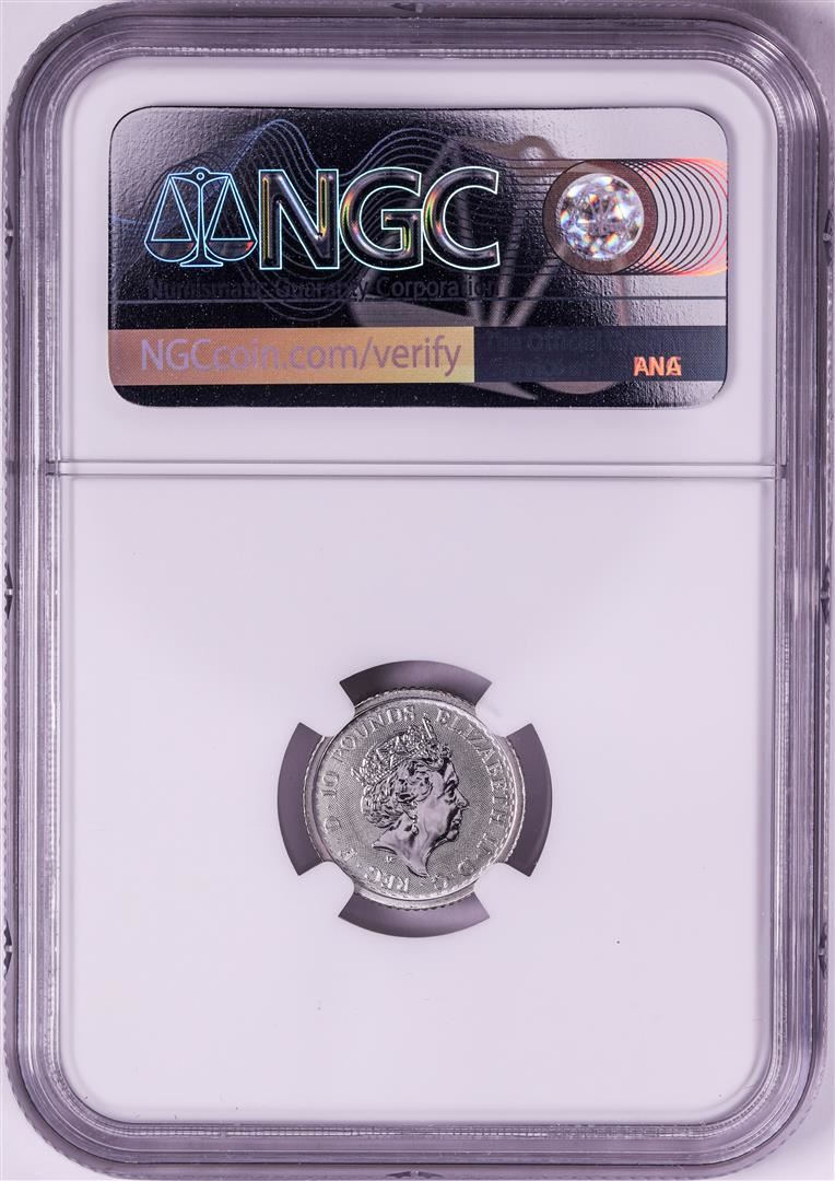 One 2021 Great Britain 10 Pounds Britannia 1/10oz Platinum Coin NGC MS69. NGC Certified.