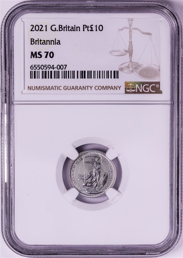 2021 Great Britain 10 Pounds Britannia 1/10oz Platinum Coin NGC MS70