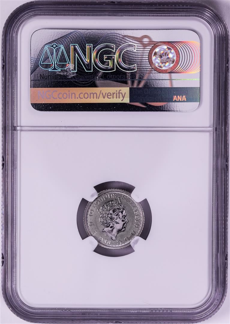One 2021 Great Britain 10 Pounds Britannia 1/10oz Platinum Coin NGC MS70. NGC Certified.