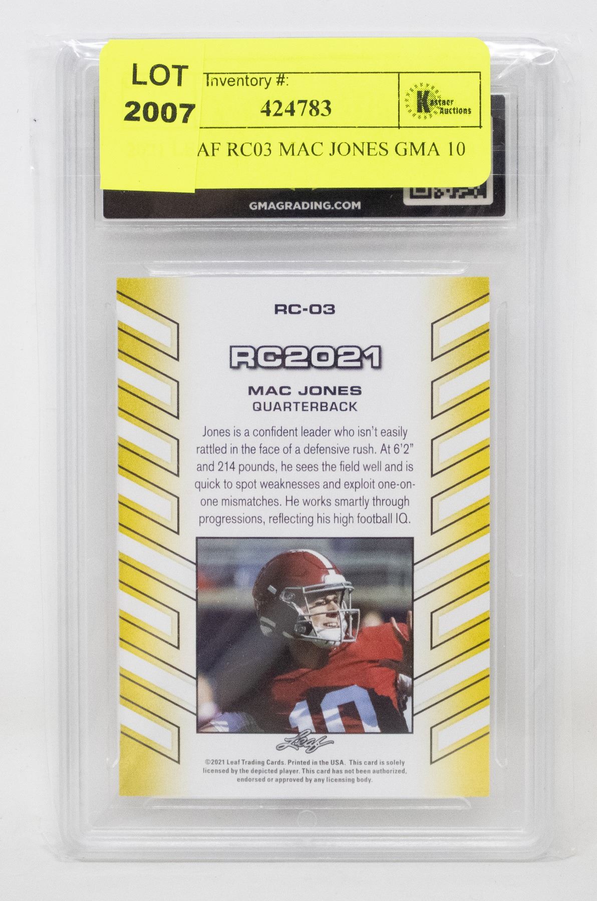 MAC JONES ROOKIE, UNDER BELICHICK, SOME PEOPLE ARE SAYING THE NEXT TOM BRADY. *ALL BIDS SUBJECT TO BANK BAILIFF OR OWNERS APPROVAL*
