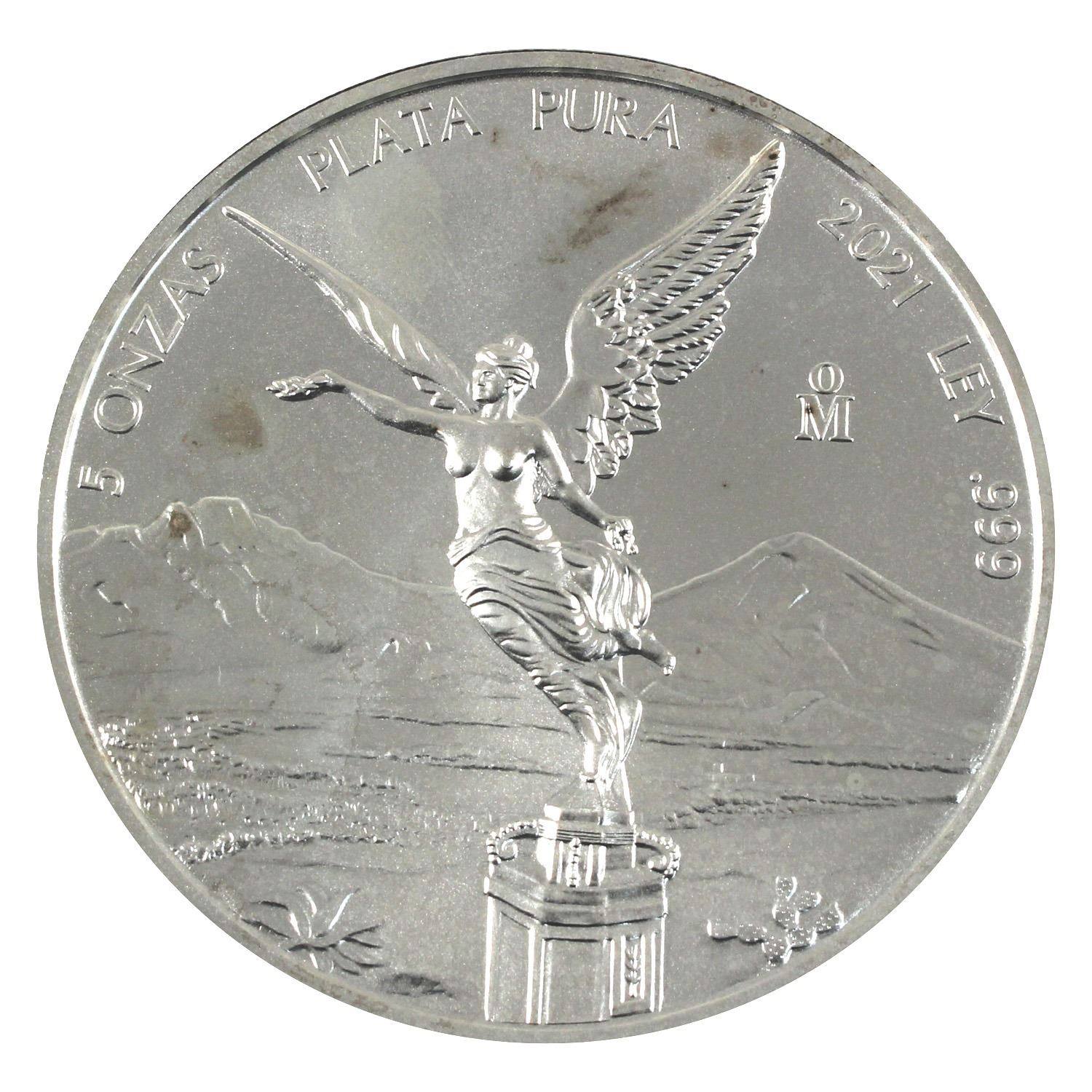 2021 Mexico 5oz .999 Fine Silver Libertad (Lightly toned). TAX Exempt