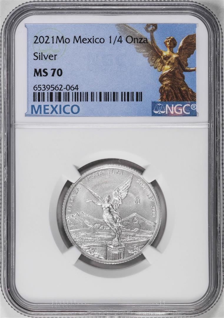 One 2021-Mo Mexico 1/4 oz Silver Libertad Coin NGC MS70. NGC Certified.