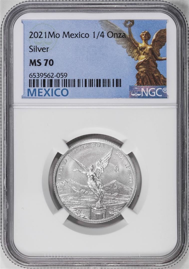 One 2021-Mo Mexico 1/4 oz Silver Libertad Coin NGC MS70. NGC Certified.