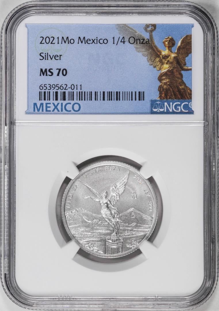 One 2021-Mo Mexico 1/4 oz Silver Libertad Coin NGC MS70. NGC Certified.