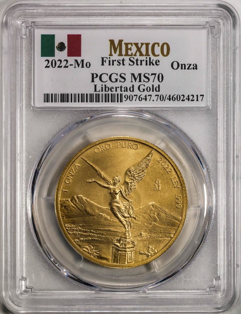 One 2021-Mo Mexico 1 oz Libertad Gold Coin PCGS MS70 First Strike. PCGS Graded.