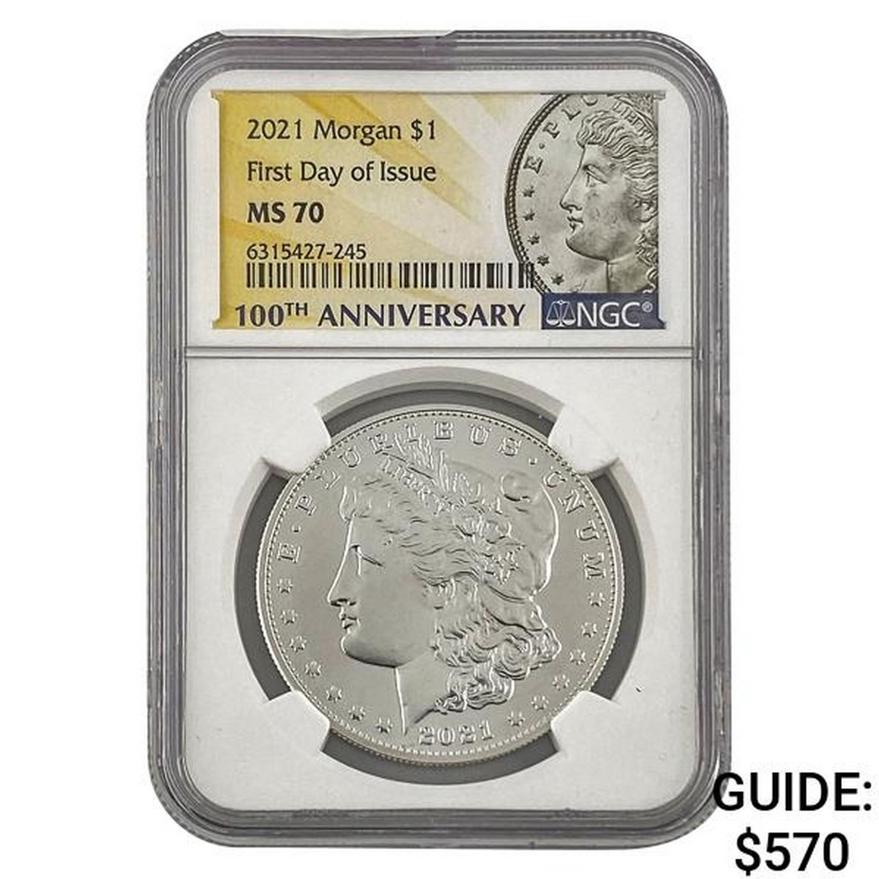 2021 Morgan Silver Dollar W/Box NGC MS70 1st Day of Issue