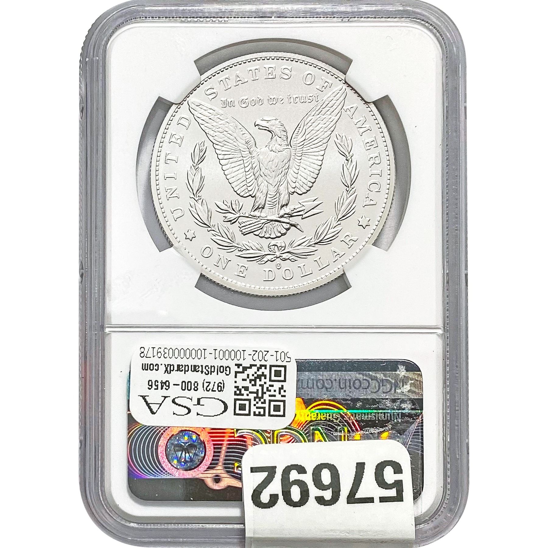 COINS AND CURRENCY LISTED IN GSA’S CATALOG AS GRADED AND ENCAPSULATED BY PCGS, NGC, ANACS, ICG, PCGS CURRENCY, PMG, PCGS BANKNOTE GRADING, CMC OR ANY OTHER THIRD-PARTY GRADING SERVICE ARE LIKEWISE SOLD “AS-IS” EXCEPT AS EXPRESSLY SET FORTH HEREIN. ALL THIRD-PARTY GRADING SERVICE GUARANTEES, INCLUDING AUTHENTICITY, ARE THE SOLE RESPONSIBILITY OF THE THIRD-PARTY GRADING SERVICE AND NOT WARRANTIES OR GUARANTEES OF GSA. BIDDERS SHOULD CONTACT THESE THIRD-PARTY GRADING SERVICES DIRECTLY WITH RESPECT TO ANY CLAIMS OR QUESTIONS THEY MAY HAVE CONCERNING THEIR GUARANTEES AND WARRANTIES. BIDDERS ACKNOWLEDGE AND AGREE THAT AUCTIONEER IS NOT BOUND BY OR LIABLE FOR ANY OPINION OR CERTIFICATION BY ANY THIRD-PARTY GRADING SERVICE. REMOVAL OF A PRODUCT FROM ITS PROTECTIVE CASING OR HOLDER OR ALTERATION OF ANY COIN HOLDER WAIVES ALL RIGHTS CONCERNING THE PRODUCT CONTAINED THEREIN.