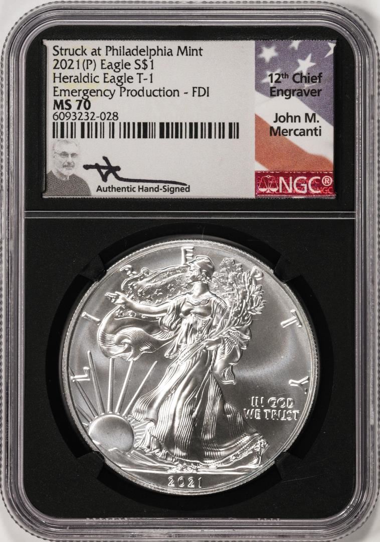2021(P) $1 American Silver Eagle Coin NGC MS70 Emergency FDI Mercanti Philadelphia
