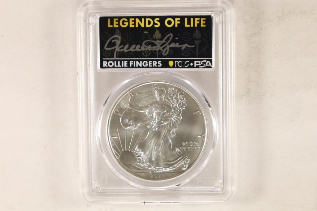EMERGENCY ISSUE STRUCK AT PHILADELPHIA SIGNED BY ROLLIE FINGERS. LEGENDS OF LIFE
