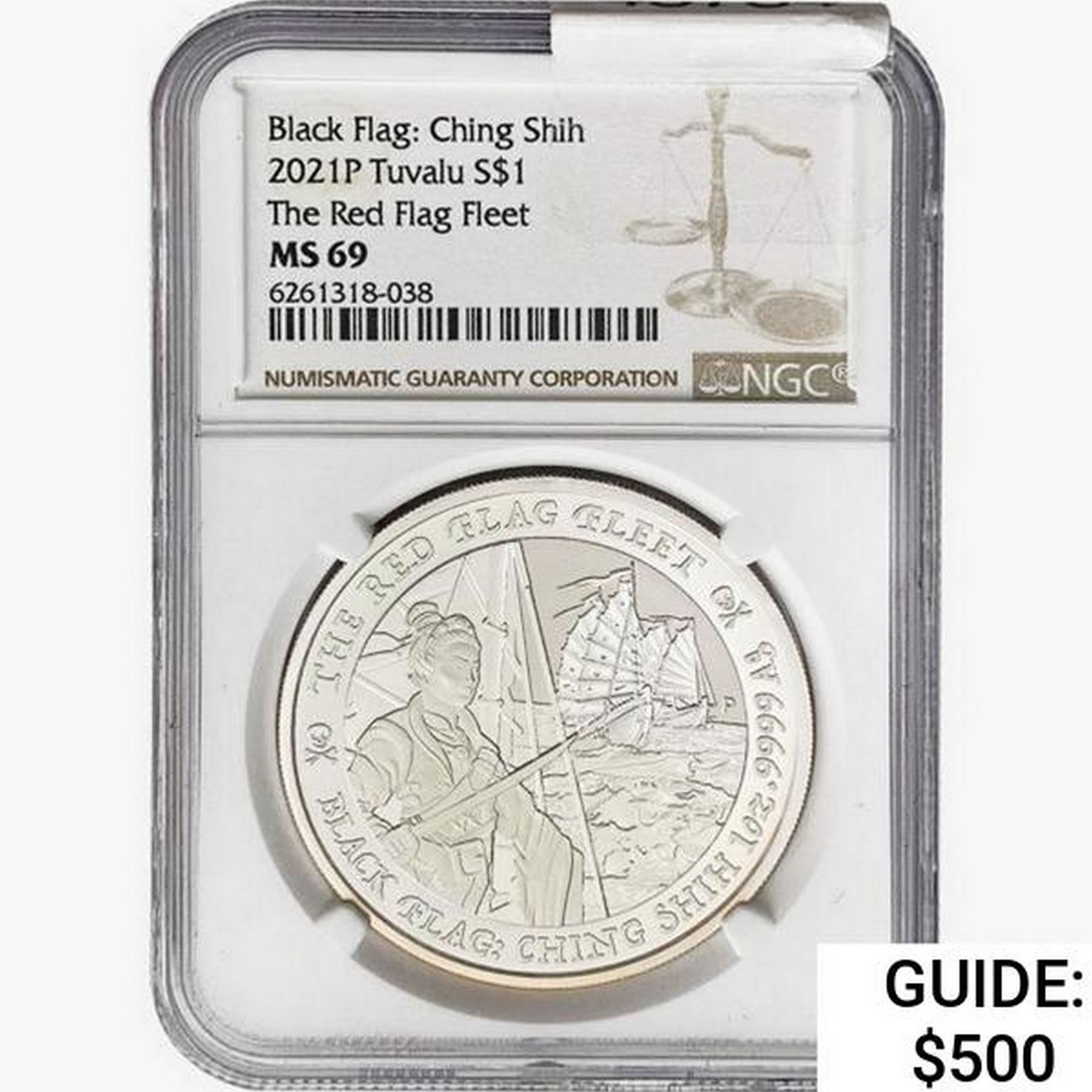 2021-P Blk Flag: Ching Shih Tuvalu $1 The Red Flag Fleet NGC MS69