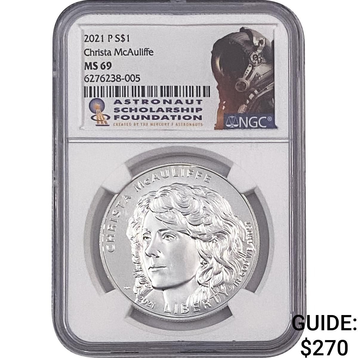 2021-P NGC MS69 Christa McAuliffe .86OZ Silver Dollar