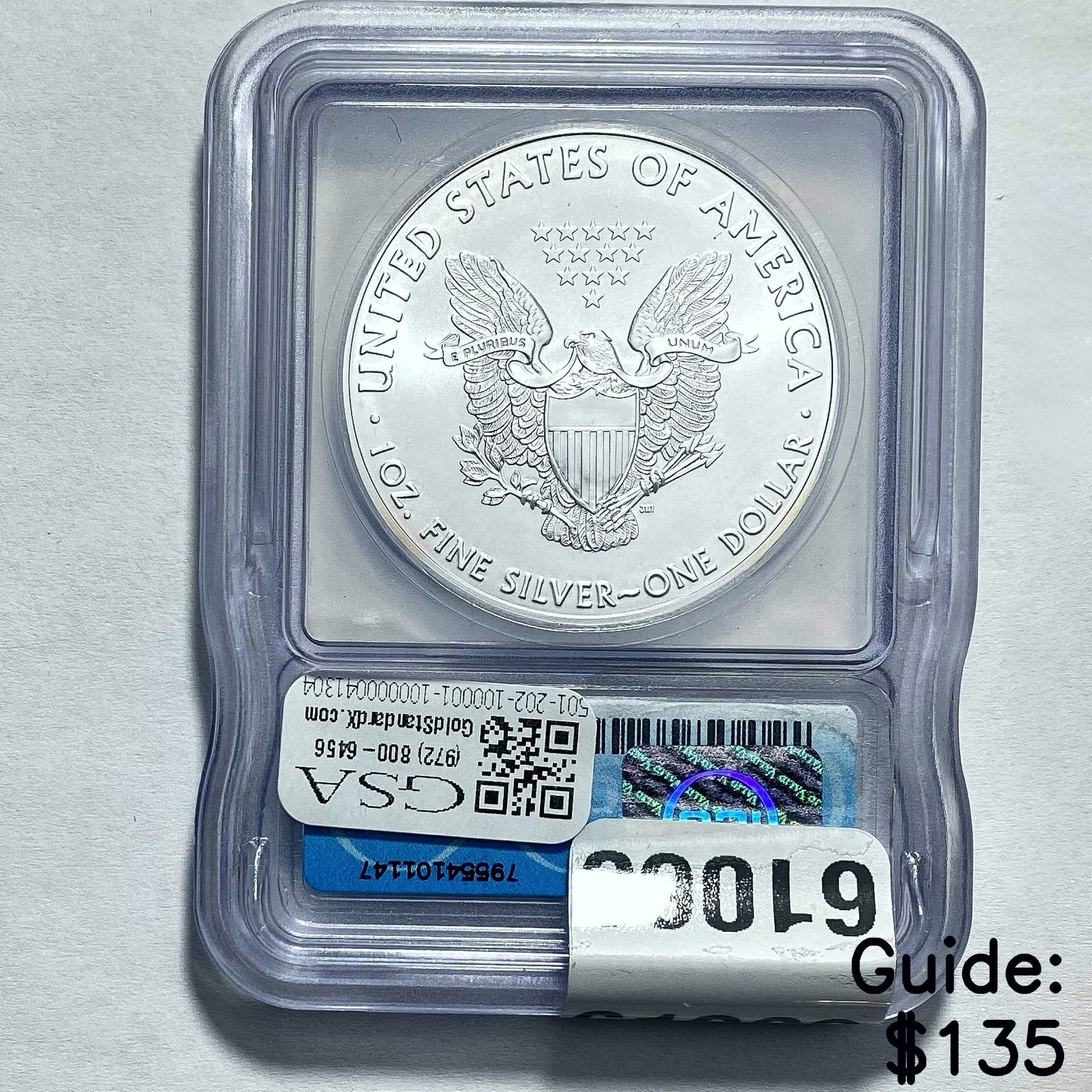 e. Coins sold referencing a third-party grading service are sold “AS IS” without any express or implied warranty, except for a guarantee by GSA that they are genuine. Removal or alteration of the holder, voids all of Bidder’s claims concerning that Product. Certain warranties may be available from the grading services and Bidders are referred to them for further details: Numismatic Guaranty Corporation (NGC), PO Box 4776, Sarasota, FL 34230, www.ngccoin.com/services/writtenguarantee.asp; Professional Coin Grading Services (PCGS), PO Box 9458, Newport Beach, CA 92658, www.pcgs.com/guarantee.html; ANACS, 6555 S. Kenton St., Ste. 303, Englewood, CO 80111; and Independent Coin Grading Co. (ICG), 7901 East Bellview, Ave., Suite 50, Englewood, CO 80111.