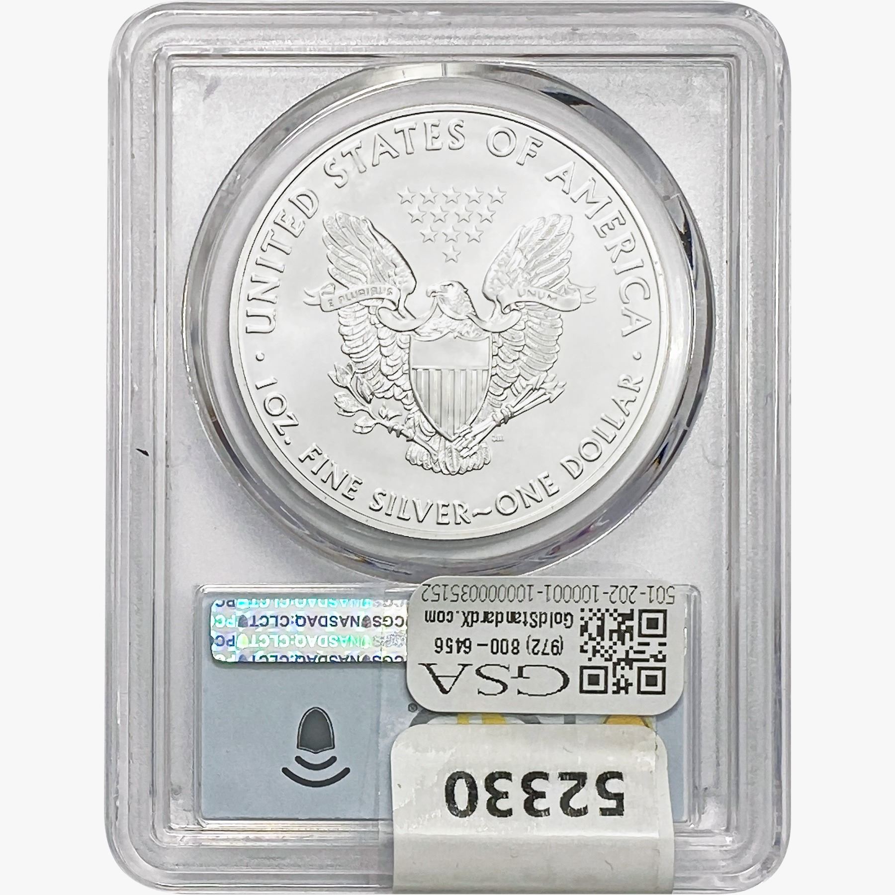 e. Coins sold referencing a third-party grading service are sold “AS IS” without any express or implied warranty, except for a guarantee by GSA that they are genuine. Removal or alteration of the holder, voids all of Bidder’s claims concerning that Product. Certain warranties may be available from the grading services and Bidders are referred to them for further details: Numismatic Guaranty Corporation (NGC), PO Box 4776, Sarasota, FL 34230, www.ngccoin.com/services/writtenguarantee.asp; Professional Coin Grading Services (PCGS), PO Box 9458, Newport Beach, CA 92658, www.pcgs.com/guarantee.html; ANACS, 6555 S. Kenton St., Ste. 303, Englewood, CO 80111; and Independent Coin Grading Co. (ICG), 7901 East Bellview, Ave., Suite 50, Englewood, CO 80111.