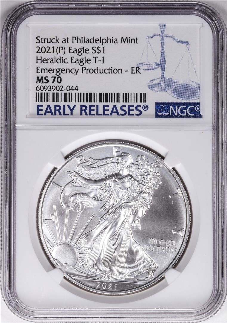 2021(P) T-1 $1 American Silver Eagle Coin NGC MS70 ER Philadelphia Emergency Issue