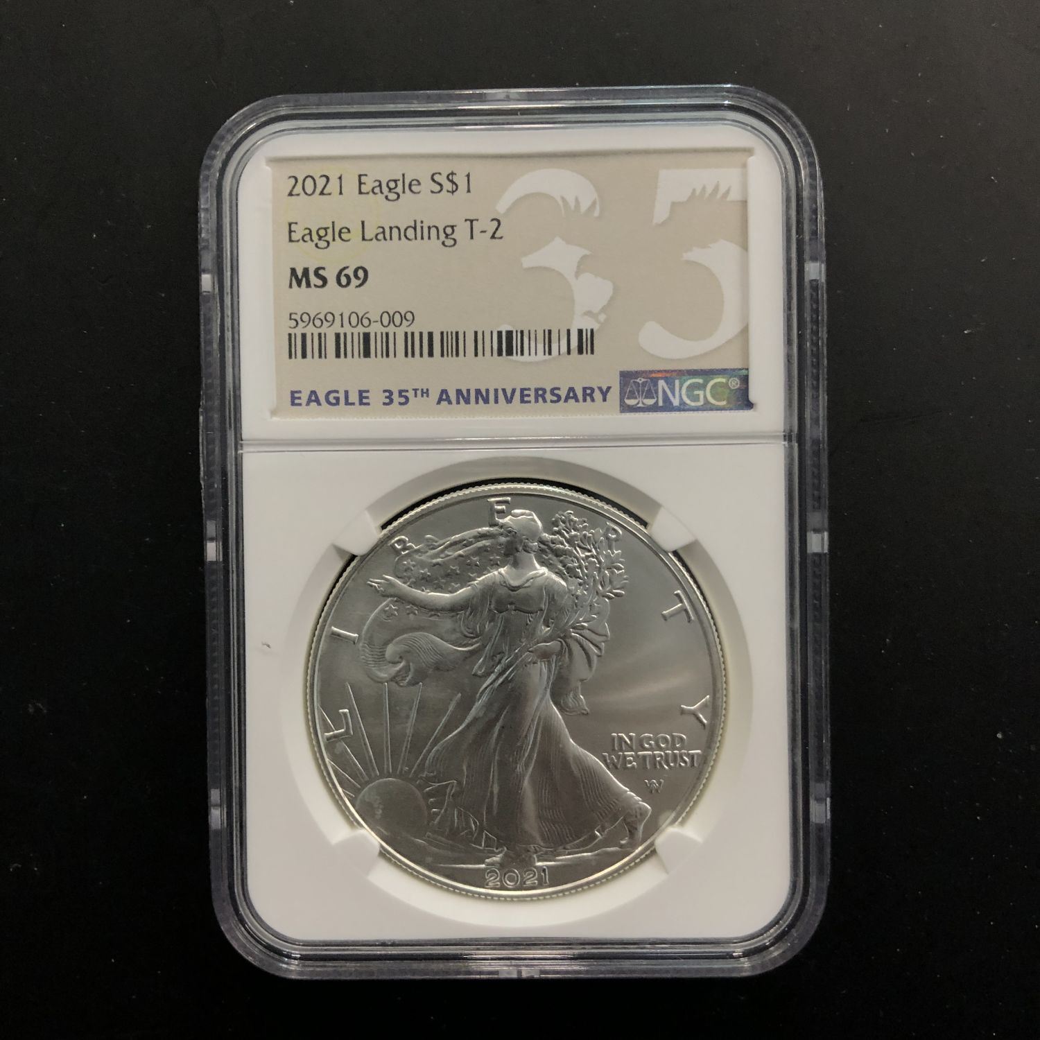 A 2021 (P) Type 2 American Silver Eagle NGC Graded MS69 . This Beautiful American Silver Eagle Dollar is the first ASE with the new Type 2 reverse. Stunning!