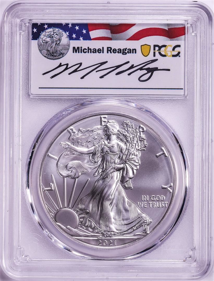 2021-(P) Ty.1 $1 American Silver Eagle Coin PCGS MS69 Reagan Signature First Day Issue