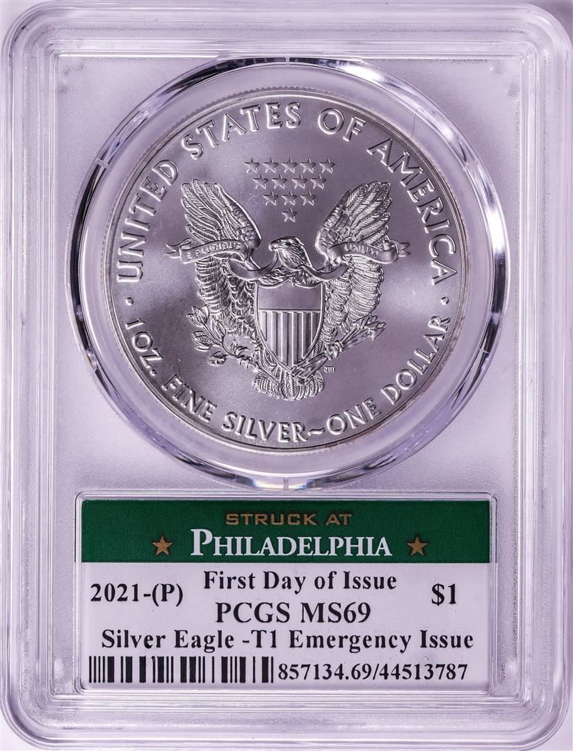 2021-(P) Ty.1 $1 American Silver Eagle Coin PCGS MS69 Reagan Signature First Day Issue