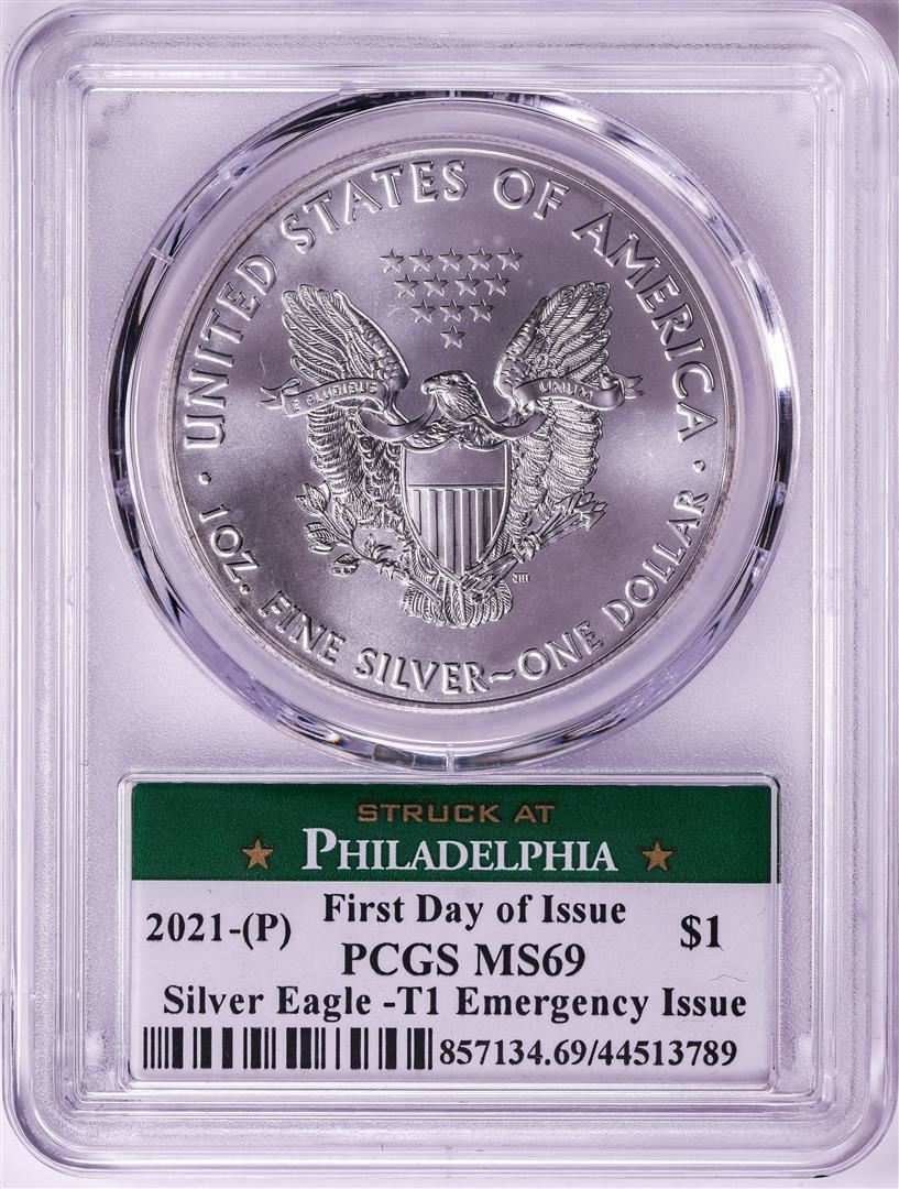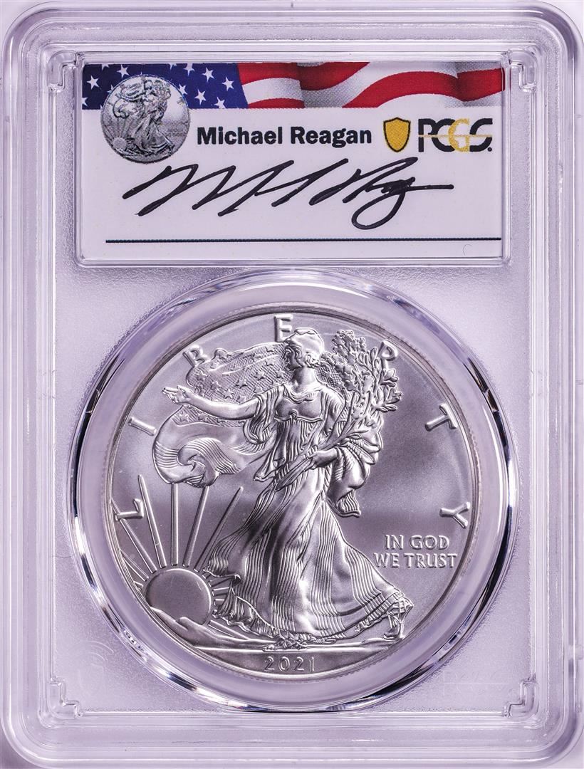 2021-(P) Ty.1 $1 American Silver Eagle Coin PCGS MS69 Reagan Signature First Day Issue