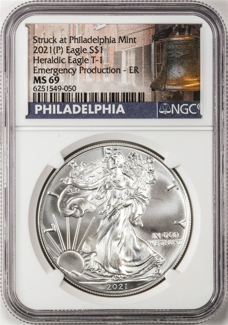 2021-(P) Type 1 $1 American Silver Eagle Coin NGC MS69 Early Release Emergency Issue