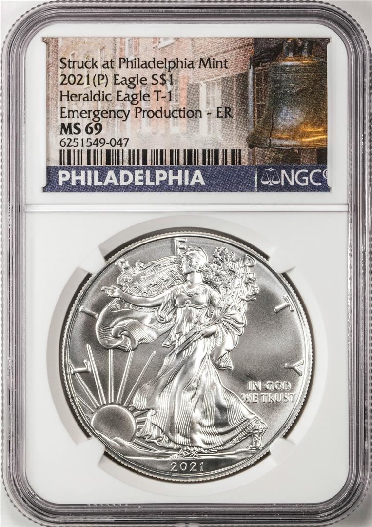 2021-(P) Type 1 $1 American Silver Eagle Coin NGC MS69 Early Release Emergency Issue