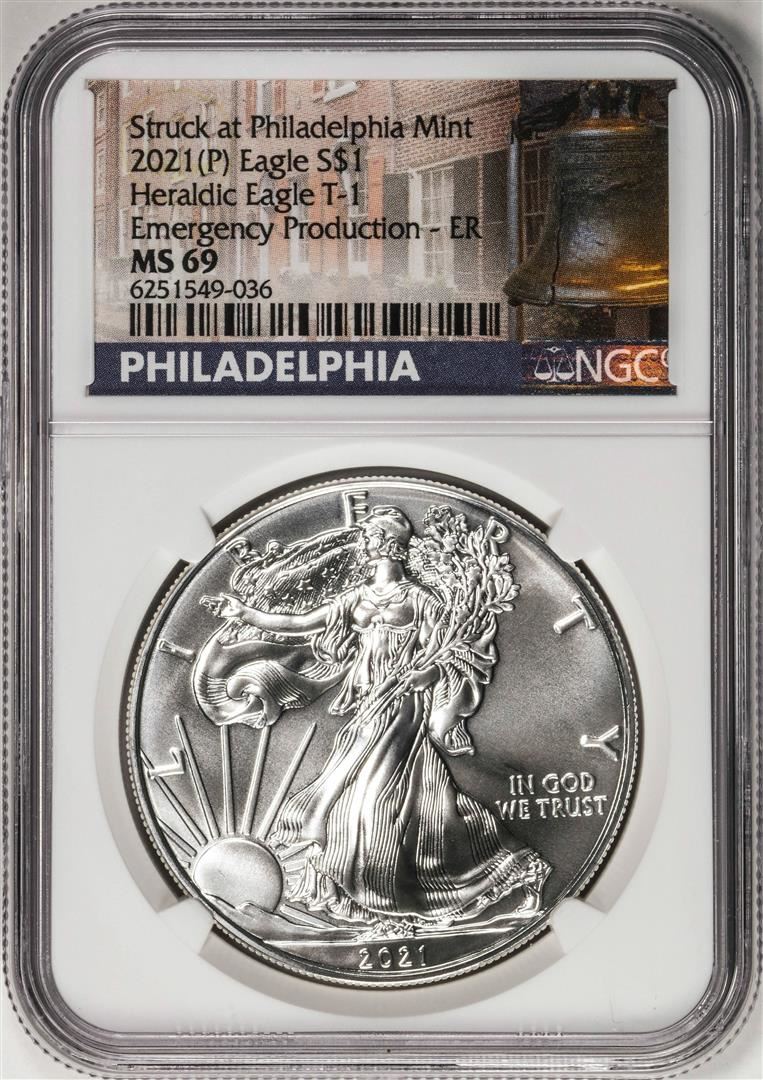 2021-(P) Type 1 $1 American Silver Eagle Coin NGC MS69 Early Release Emergency Issue