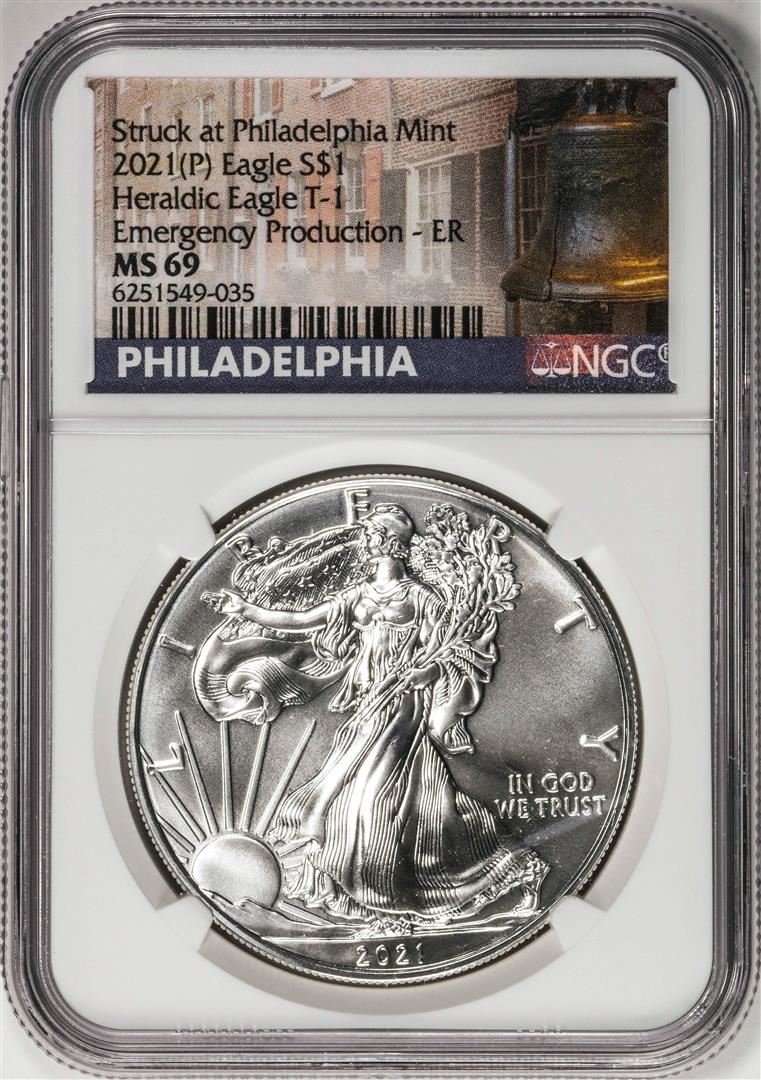 2021-(P) Type 1 $1 American Silver Eagle Coin NGC MS69 Early Release Emergency Issue