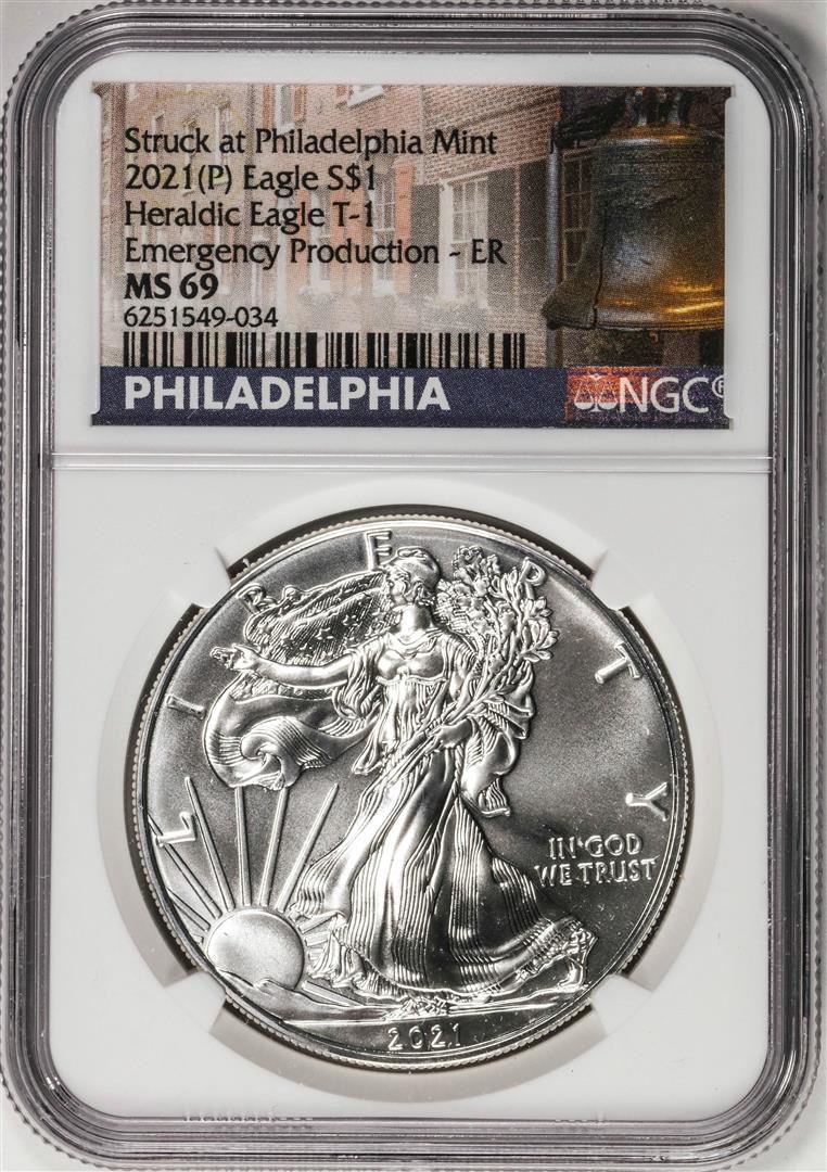 2021-(P) Type 1 $1 American Silver Eagle Coin NGC MS69 Early Release Emergency Issue