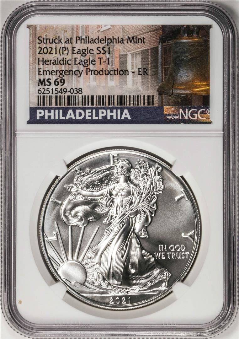 2021-(P) Type 1 $1 American Silver Eagle Coin NGC MS69 Early Release Emergency Issue