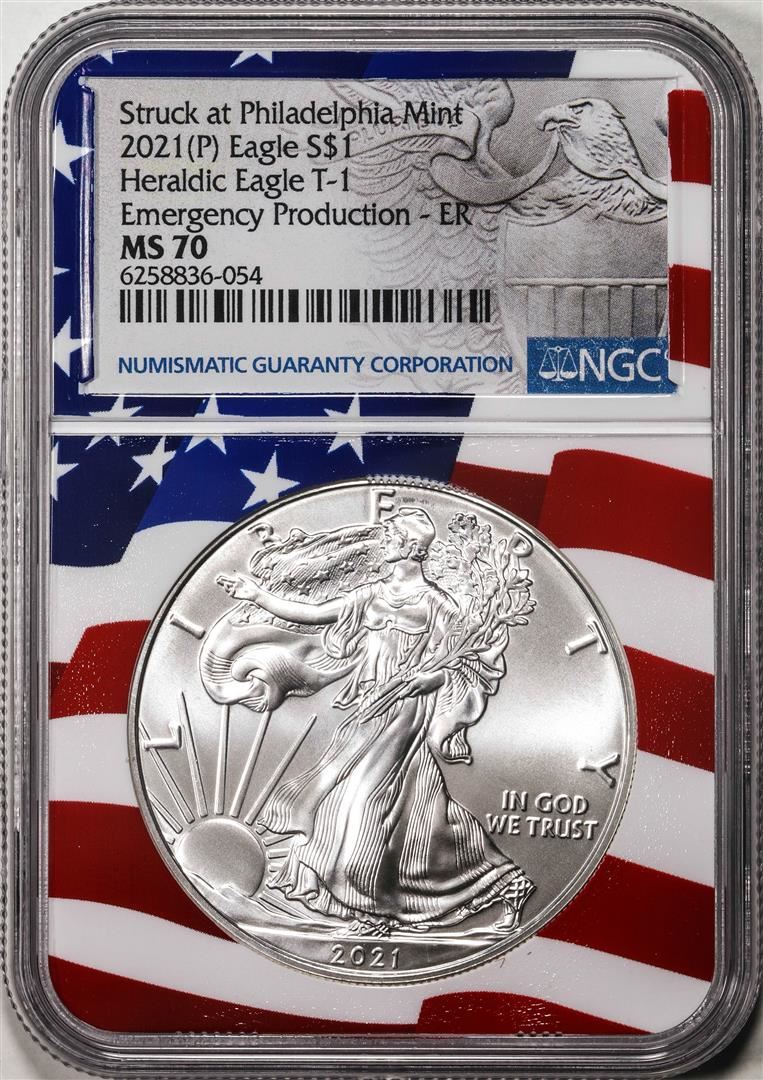 One 2021(P) Type 1 $1 American Silver Eagle Coin NGC MS70 ER Philadelphia Emergency Issue. NGC Certified.