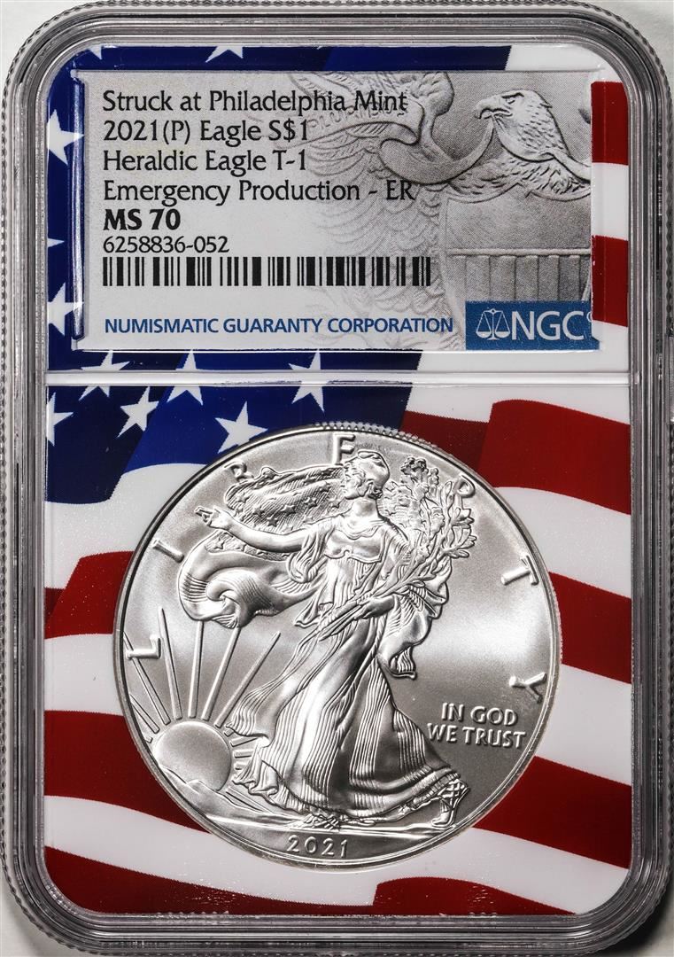 One 2021(P) Type 1 $1 American Silver Eagle Coin NGC MS70 ER Philadelphia Emergency Issue. NGC Certified.