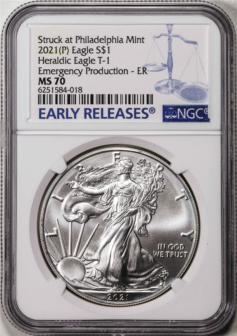 2021(P) Type 1 $1 American Silver Eagle Coin NGC MS70 Early Releases Philadelphia