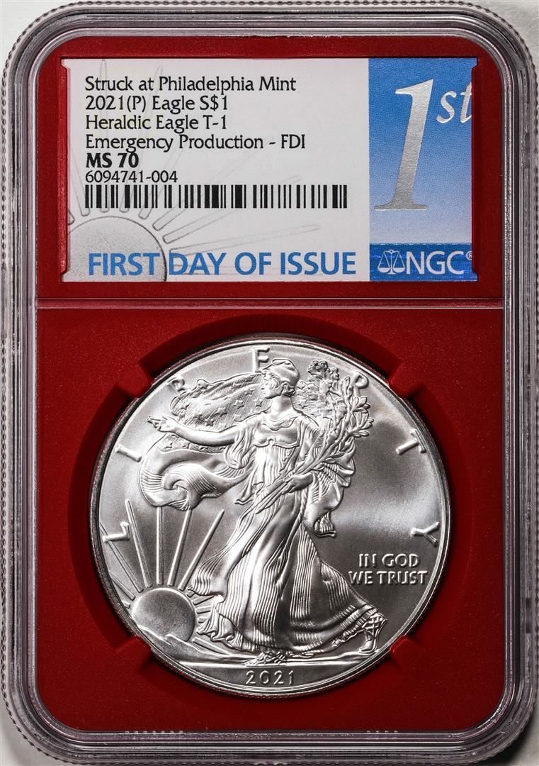 2021(P) Type 1 $1 American Silver Eagle Coin NGC MS70 FDI Philadelphia Red Cores