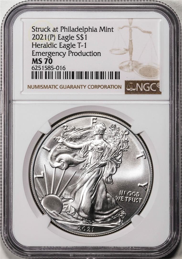2021(P) Type 1 $1 American Silver Eagle Coin NGC MS70 Struck at Philadelphia