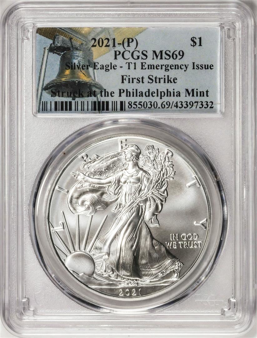 2021-(P) Type 1 $1 American Silver Eagle Coin PCGS MS69 First Strike Emergency Issue