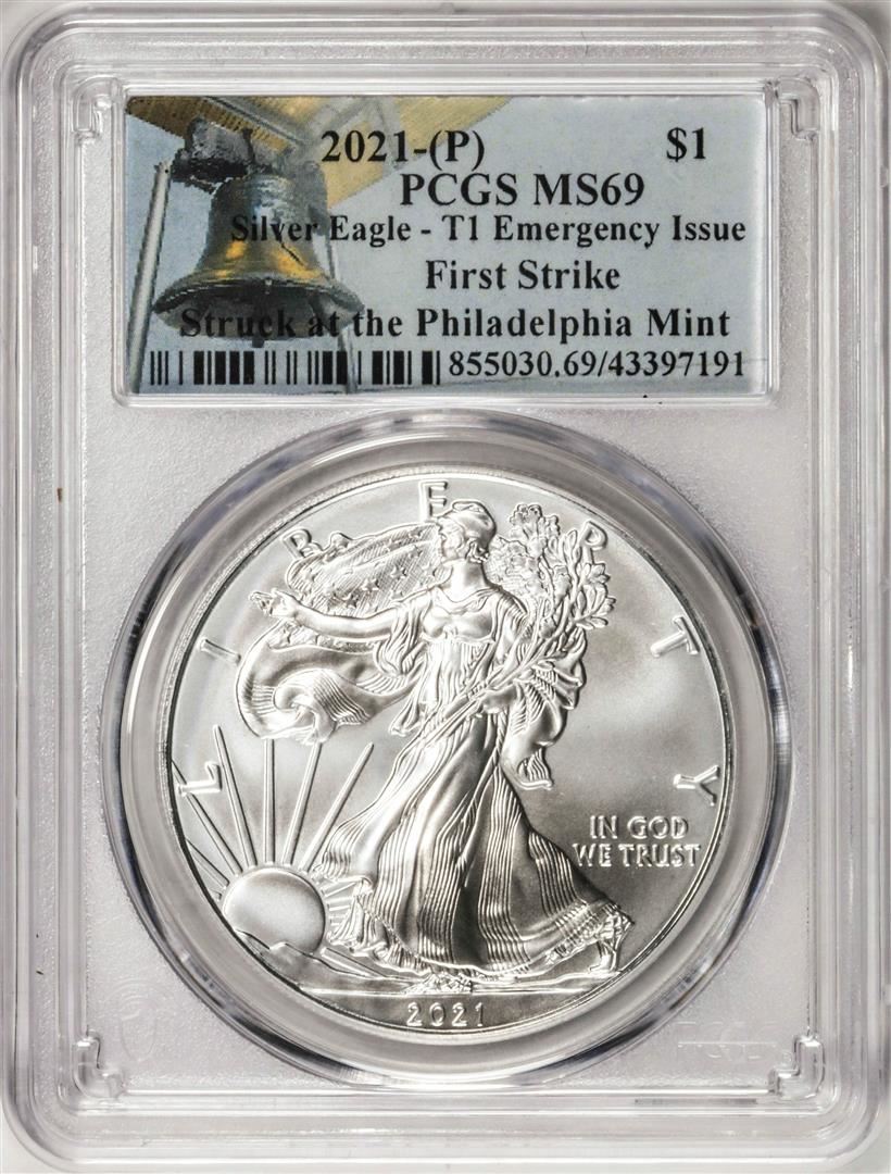 2021-(P) Type 1 $1 American Silver Eagle Coin PCGS MS69 First Strike Emergency Issue