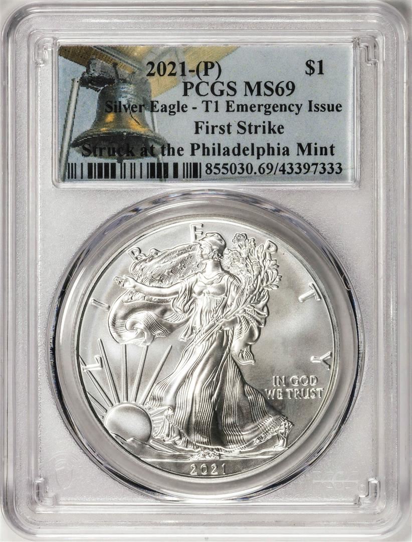 2021-(P) Type 1 $1 American Silver Eagle Coin PCGS MS69 First Strike Emergency Issue