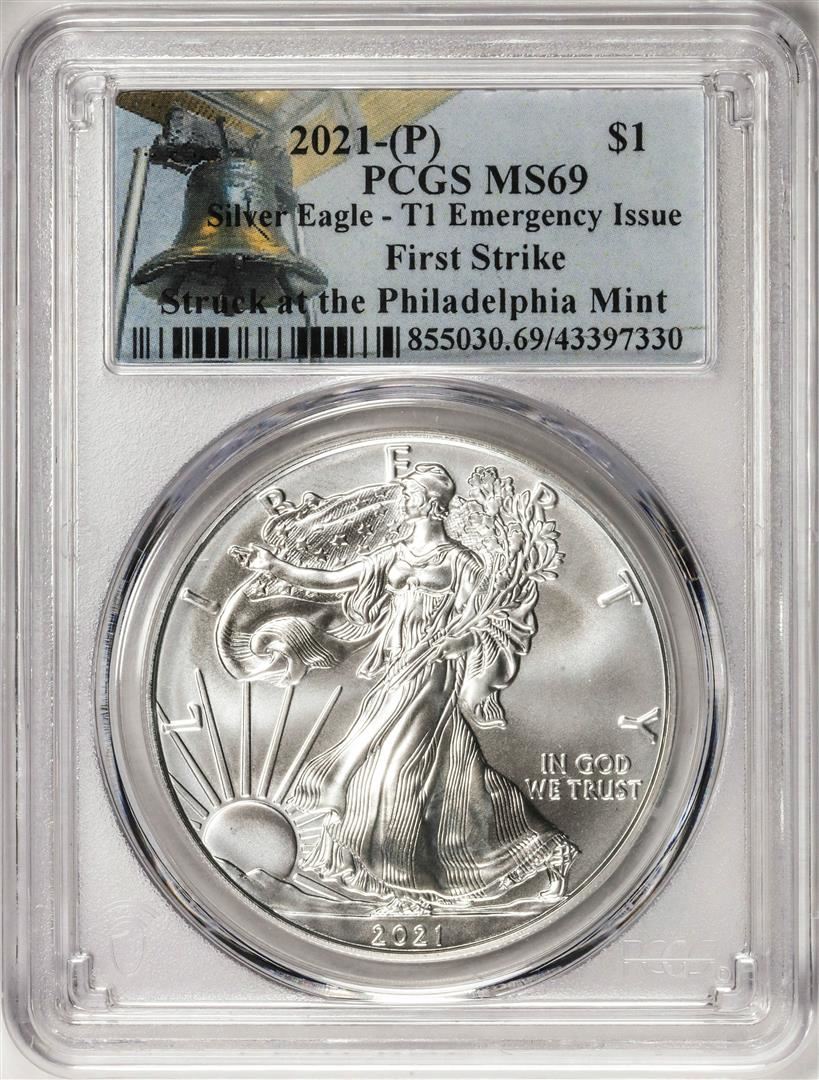 2021-(P) Type 1 $1 American Silver Eagle Coin PCGS MS69 First Strike Emergency Issue