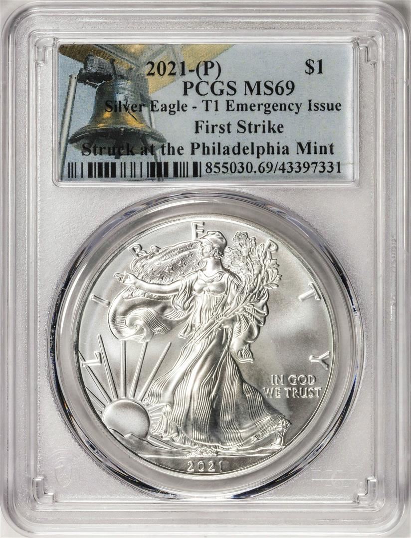 2021-(P) Type 1 $1 American Silver Eagle Coin PCGS MS69 First Strike Emergency Issue