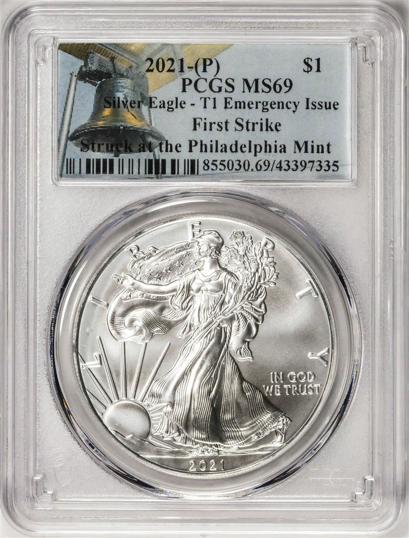 2021-(P) Type 1 $1 American Silver Eagle Coin PCGS MS69 First Strike Emergency Issue